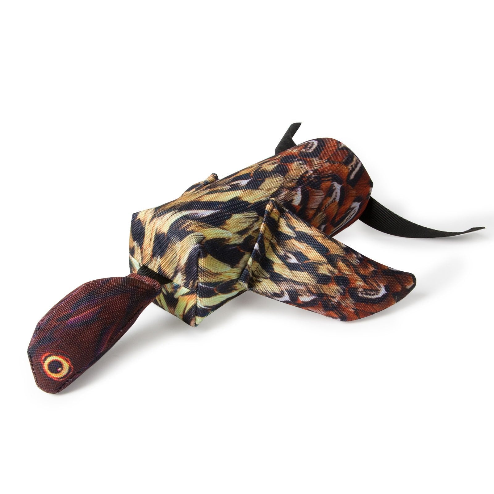 Bringing a new life like realism to your training with the high definition photographic canvas print of real-life game birds feather patterns. Designed specifically with the dog and hander in mind, the advanced marking visibility and eye-catching realistic appeal of the dummy to help your train your dog with the convenience of dummies and the realism of the types of game birds your dog may be retrieving in the field.