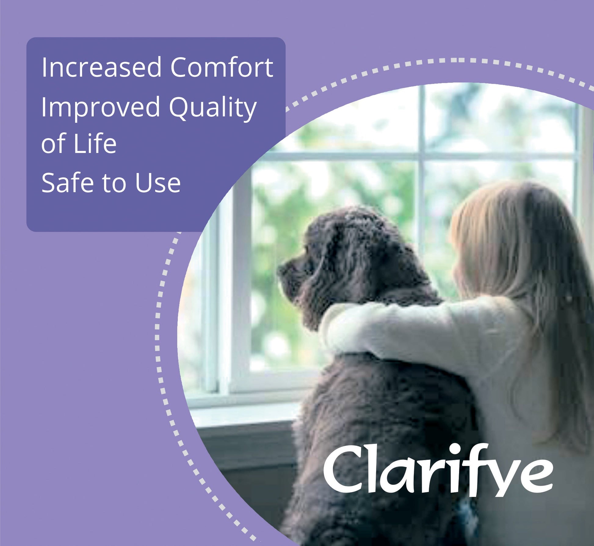 "We are delighted with the benefit clarifye gives our dog. The vet expected to see deterioration in his vision after 18 months of cataracts, instead there has been an improvement in his vision. Long may it continue" Tony Clapham, Judge,me Reviews.