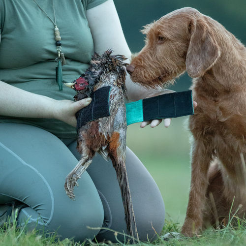 The wrap originated from a common challenge as a novice gundog handler, for which the cold game wrap has been a transformational solution. As a relative newcomer to gundog training Holly-Jane was surprised by how few products there were that supported cold game training. Holly-Jane's HPR was a confident retriever with a strong hold, but was getting confused by game, as many dogs are. Holly-Jane reflects "You can see a lot of dogs thinking: Do I pick cold game by the head, the neck, a wing, a leg? Getting a good central hold can help a lot with a confident retrieve on game". Some dogs may also be cautious when they are introduced to game, a canvas wrap acts as a good transitionary aid, acting as a helpful familiar texture while exposing the dog to game. This wrap can help:
