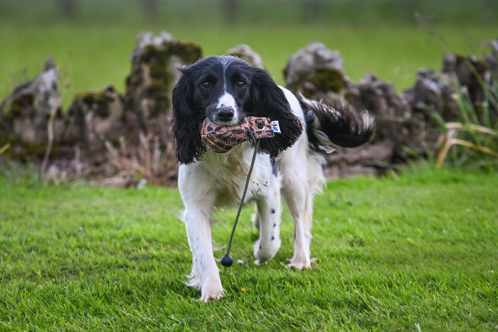 The ' Dummy Ball ' Small Easy to Throw Great aid for training and starting young dogs off, or getting a dog interested in picking up dummies! Also helps in the training of more advanced dogs as when the dummy ball is thrown in tall grass, hedges, etc, it really sinks into the ground making the dogs eager to hunt for it. 250G in Weight Available in Green, Blue, Red, Orange, Union Jack (red, white and blue) and Green/orange, White, Flight Range. Can also be used as a Rabbit Dummy Ball. Developed and produced by Sporting Saint.