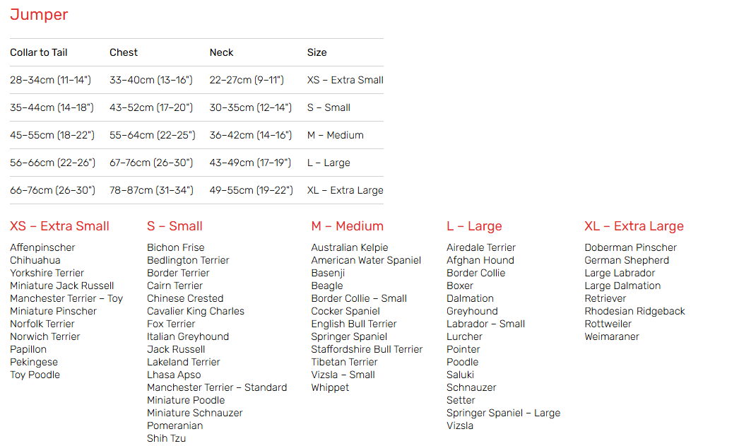 The Dog Jumper comes in five sizes from chihuahua (retail £17.95) to rottweiler (retail £30.95), and in five colours – Black, Red, Royal Blue, Forest Green and Grape.