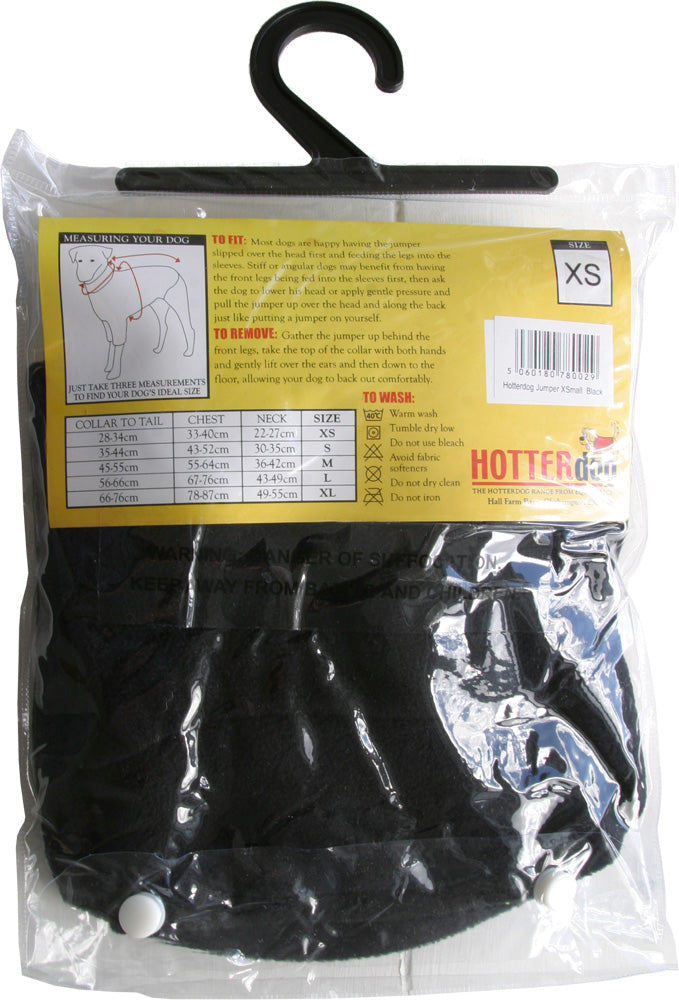 The HOTTERdog Dog Jumper covers the torso embracing the chest, belly and front legs, and extends to the base of the tail giving maximum warmth and incredible freedom of movement for the tiniest dog or most hectic greyhound.
