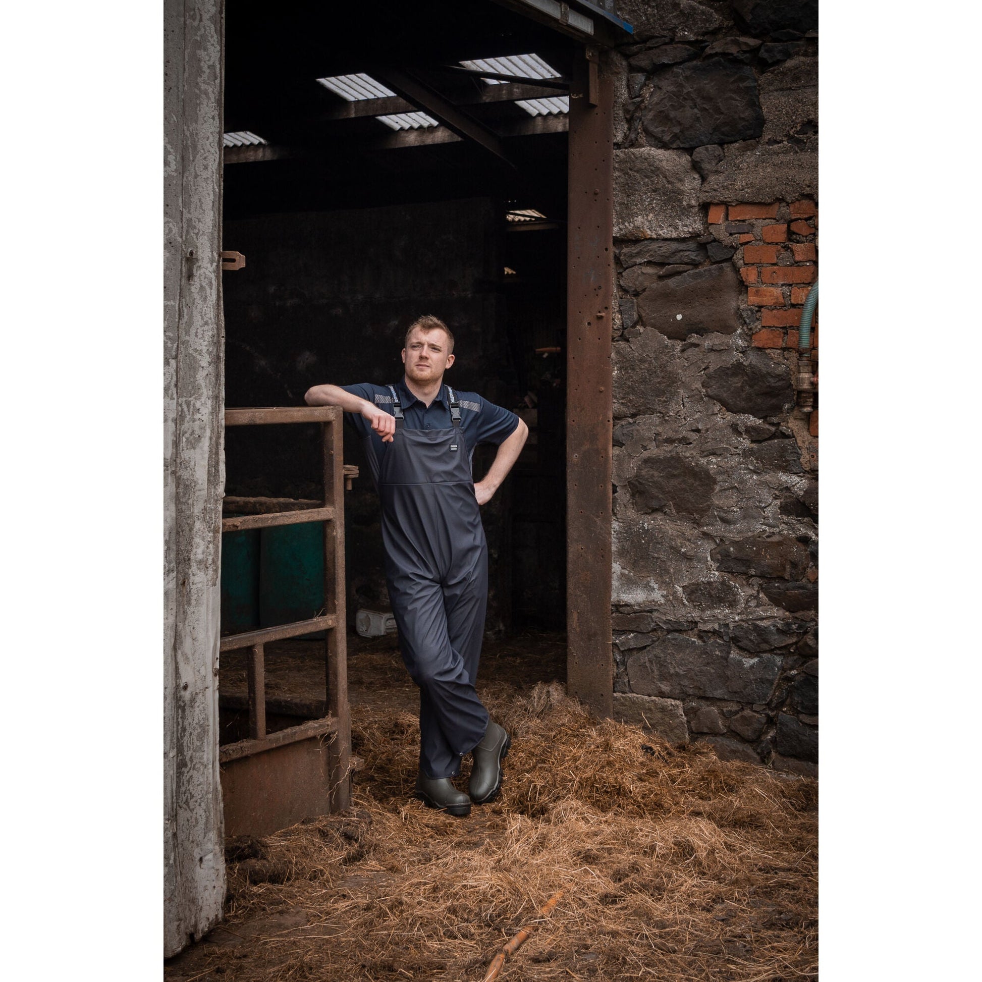 The 'No-Sweat' Stormgear™ Bib & Brace is waterproof tested to 6,000mm – 4 times the minimum standard – ensuring adequate protection from even the most severe wet weather conditions. Designed for farmers, the broad chest bib front design gives great protection, and stud buttons on the bottom hem ensure a close fit around your boots or wellingtons. Elastic straps with large buckle clips for easy fitting. Washable fabric means you can at least start the day clean.
