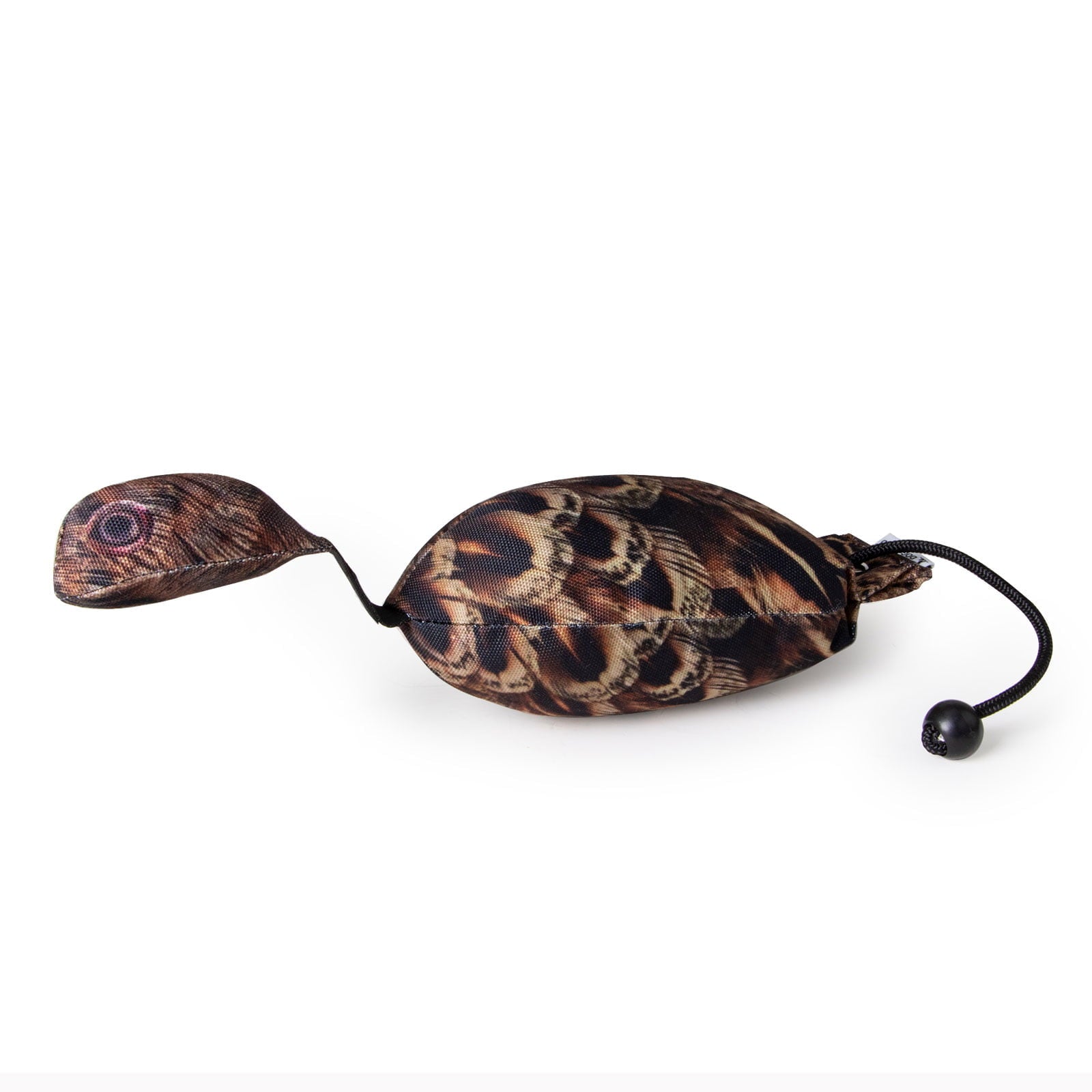 Bringing a new life like realism to your training with the high definition photographic canvas print of real-life game birds feather patterns. Designed specifically with the dog and hander in mind, the advanced marking visibility and eye-catching realistic appeal of the dummy to help your train your dog with the convenience of dummies and the realism of the types of game birds your dog may be retrieving in the field.