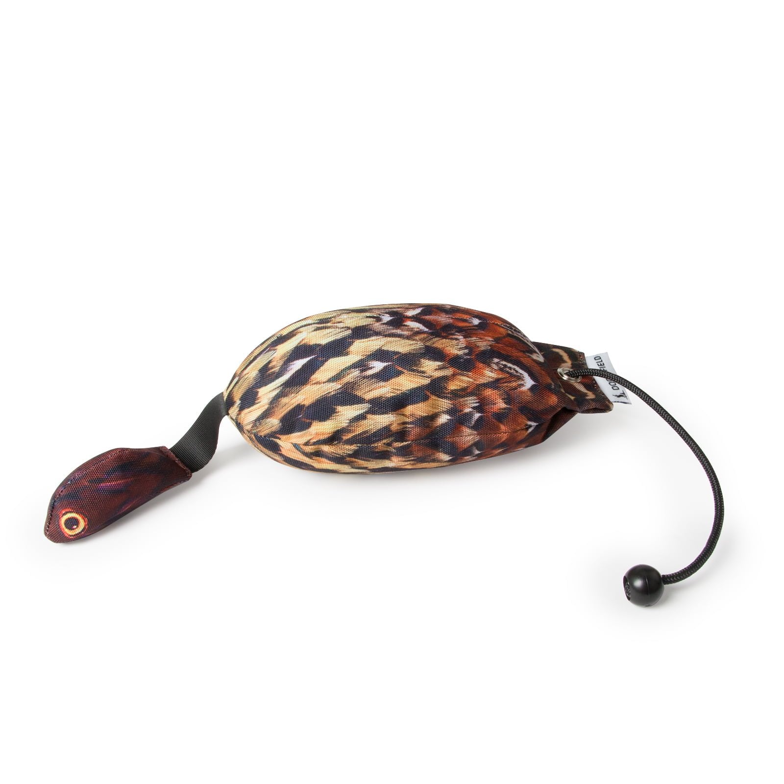 Experience lifelike training with our high definition photographic canvas print of game bird feather patterns. Designed with the dog and handler in mind, our dummy offers advanced marking visibility and realistic appeal to help train your dog with convenience and life-like simulation. The Original Clone Bird Dummies provide the perfect balance of visual and physical realism, featuring an HD photographic feather print, true-to-life body shape and size, and durable design. Available in Cock Pheasant, Hen Pheasant, and Partridge options.