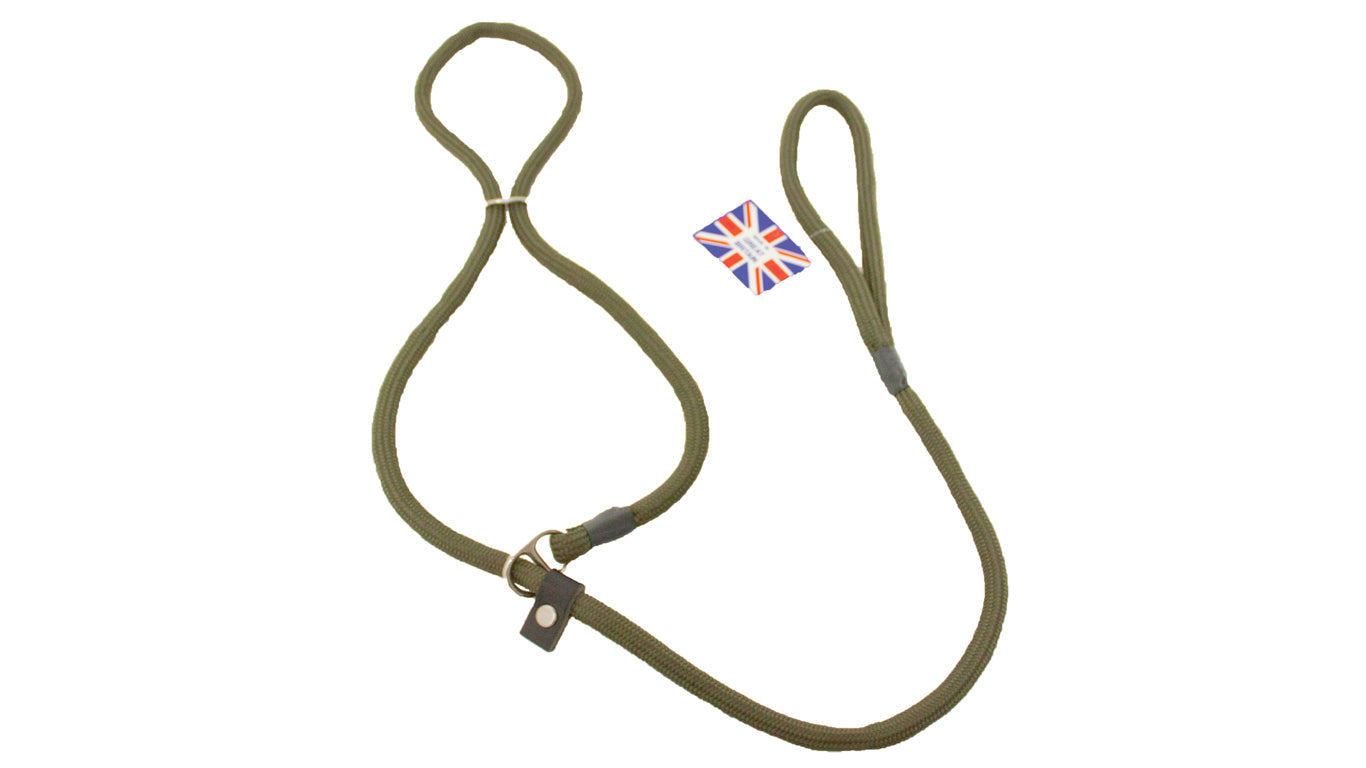 Quick and easy to use. One stop prevents lead from becoming too tight while the other stop prevents the lead sliding off when your dog is by your side and the lead is loose. Can also be made into a combined lead and head/nose collar. 8mm matt braid with leather stop and nickel adjusters. Made in the UK.